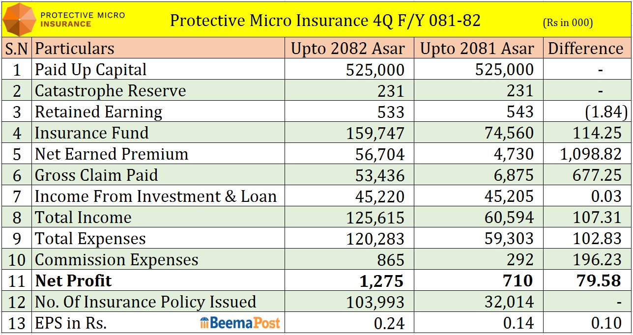 प्रोटेक्टिभ माइक्रो इन्स्योरेन्सको बीमा शुल्क आर्जन साढे १८ करोड, कस्ता छन् अन्य सूचांक ?