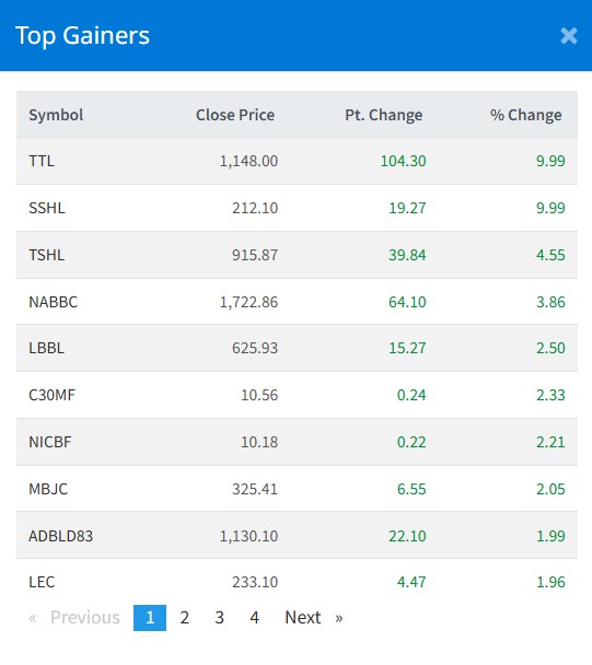 त्यस्तै, थ्री स्टार हाइड्रोपावर, नारायणी डेभलपमेन्ट बैंक, लुम्बिनी विकास बैंक, मध्य भोटेकाशी जलविद्युत कम्पनी लगायतको शेयरमूल्यमा बृद्धि भएको छ ।