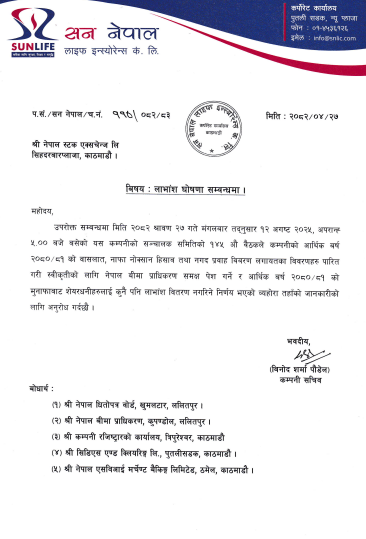 सन नेपाल लाइफले लाभांश वितरण नगर्ने