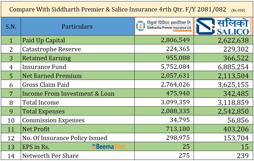 सलिको र सिद्धार्थ प्रिमियर इन्स्योरेन्सबीच कडा प्रतिस्पर्धा, कुन वित्तीय सूचकमा को बलियो ? (तथ्यांकसहित)