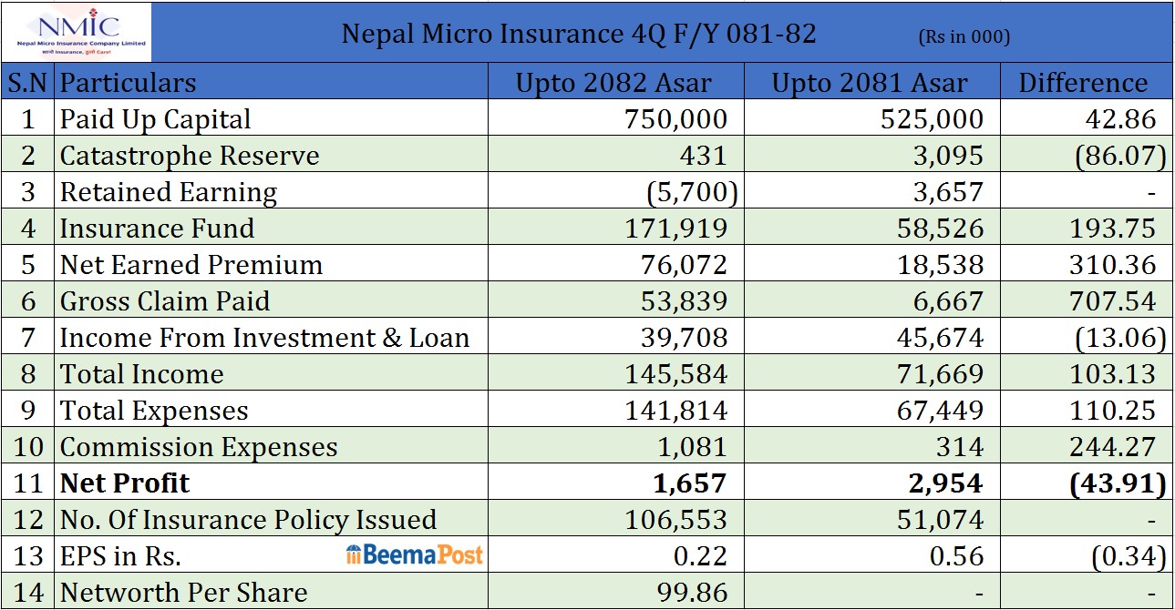 नेपाल माइक्रो इन्स्योरेन्सले कमायो १६ लाख रुपैयाँ नाफा, अन्य सूचक कस्ता?
