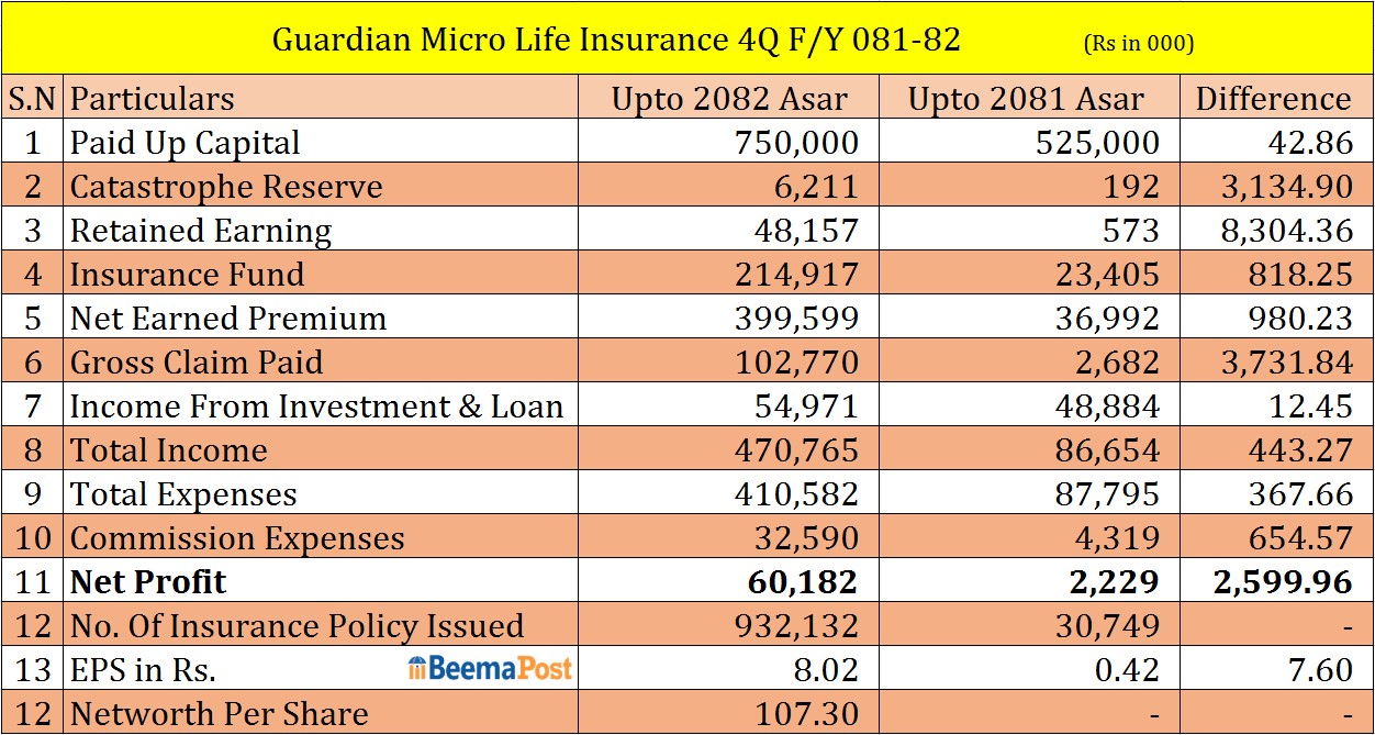 गार्डियन माइक्रो लाइफको वित्तीय विवरणमा चमकः नाफा र आम्दानीमा उछाल, अन्य सूचक कस्ता?