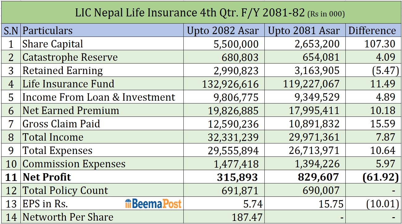 एलआईसी नेपालले कमायो ३१ करोड ५८ लाख रुपैयाँ नाफा, जीवन बीमाकोष १ खर्ब ३३ अर्ब नजिक