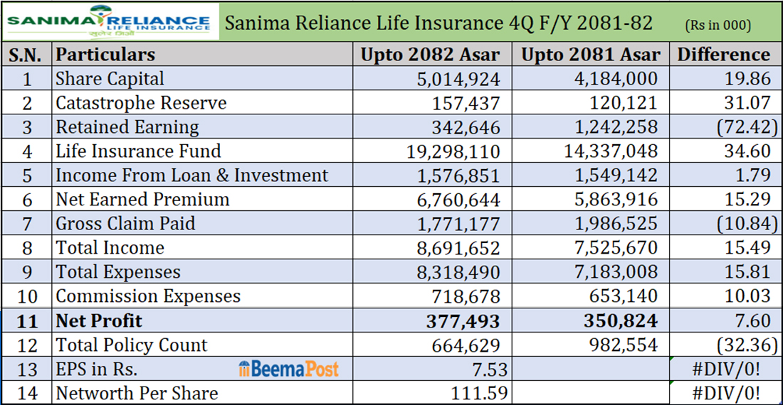वित्तीय रुपमा अब्बल देखियो सानिमा रिलायन्स लाइफः अधिकांश सूचकमा चमक