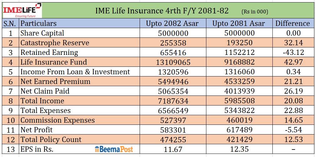 वित्तीय रुपमा बलियो बन्दै आइएमई लाइफ, बीमा कोष सञ्चिती १३ अर्बबढी, बीमा शुल्कसहित प्रमुख सूचांकमा लोभलाग्दो ग्रोथ