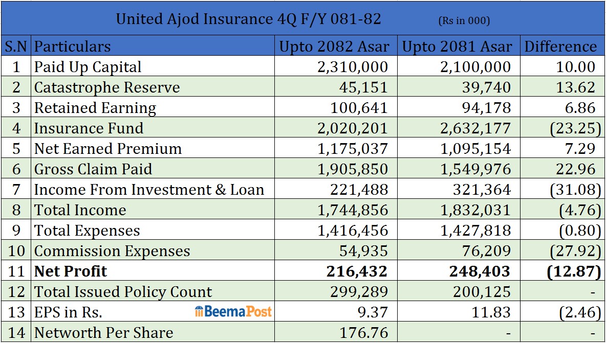 यूनाइटेड अजोडले गत आवमा कमायो २१ करोड ६४ लाख नाफा, अन्य वित्तीय सूचक कस्ता?