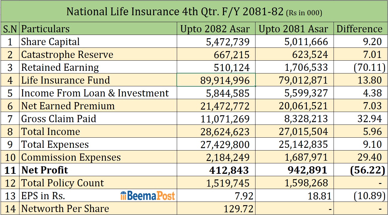 नेशनल लाइफको वित्तीय विवरणमा उल्लेख्य प्रगतिः बीमाकोष खर्ब नजिक, अन्य सूचक कस्ता?