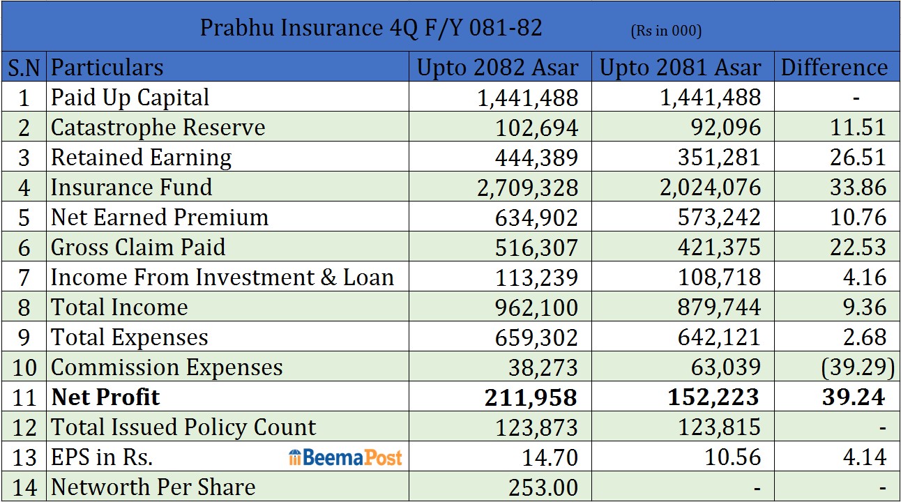 प्रभु इन्स्योरेन्सको वित्तीय विवरणमा चमकः नाफासँगै ईपीएस बढ्यो, बीमाकोष २ अर्ब ७० करोडमाथि