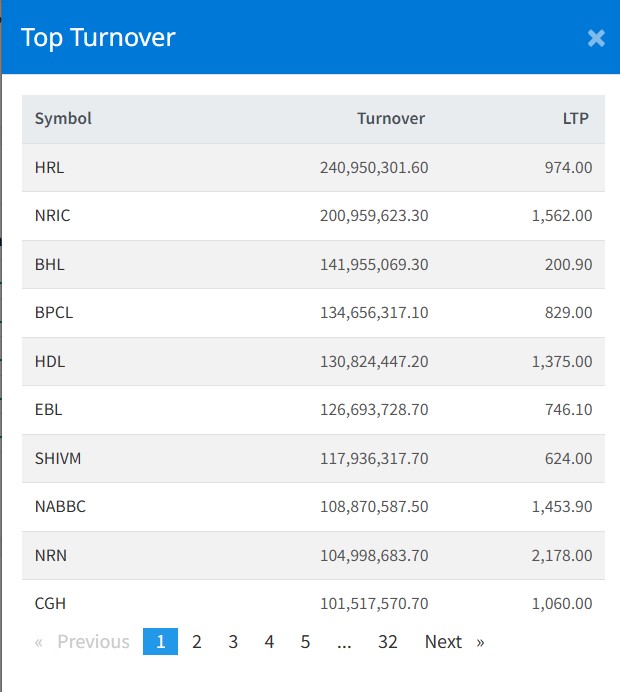 यसदिन कुल ३१९ वटा कम्पनीको एक करोड ६८ लाख ५५ हजार कित्ता शेयर खरिद बिक्री भएर पाँच अर्ब दुई करोड एक लाख रुपैयाँको कारोबार भएको छ । जसमा हिमालयन रि इन्स्योरेन्सको २४ करोड नौ लाख रुपैयाँले सर्वाधिक कारोबार भएको छ ।