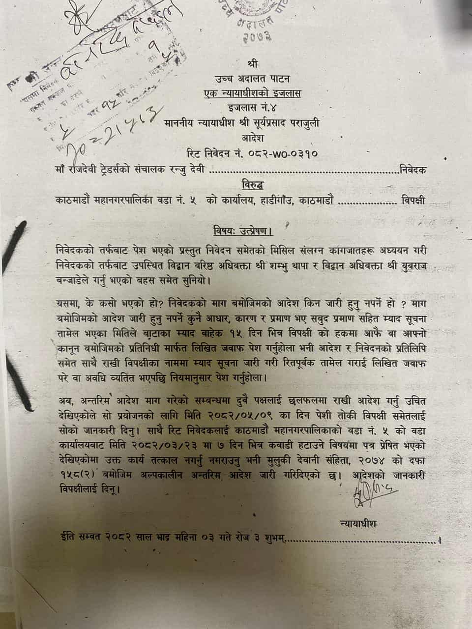 काठमाडौं महानगरपालिकालाई झट्का, कबाडी हटाउने कार्य तत्काल रोक्न अन्तरिम आदेश
