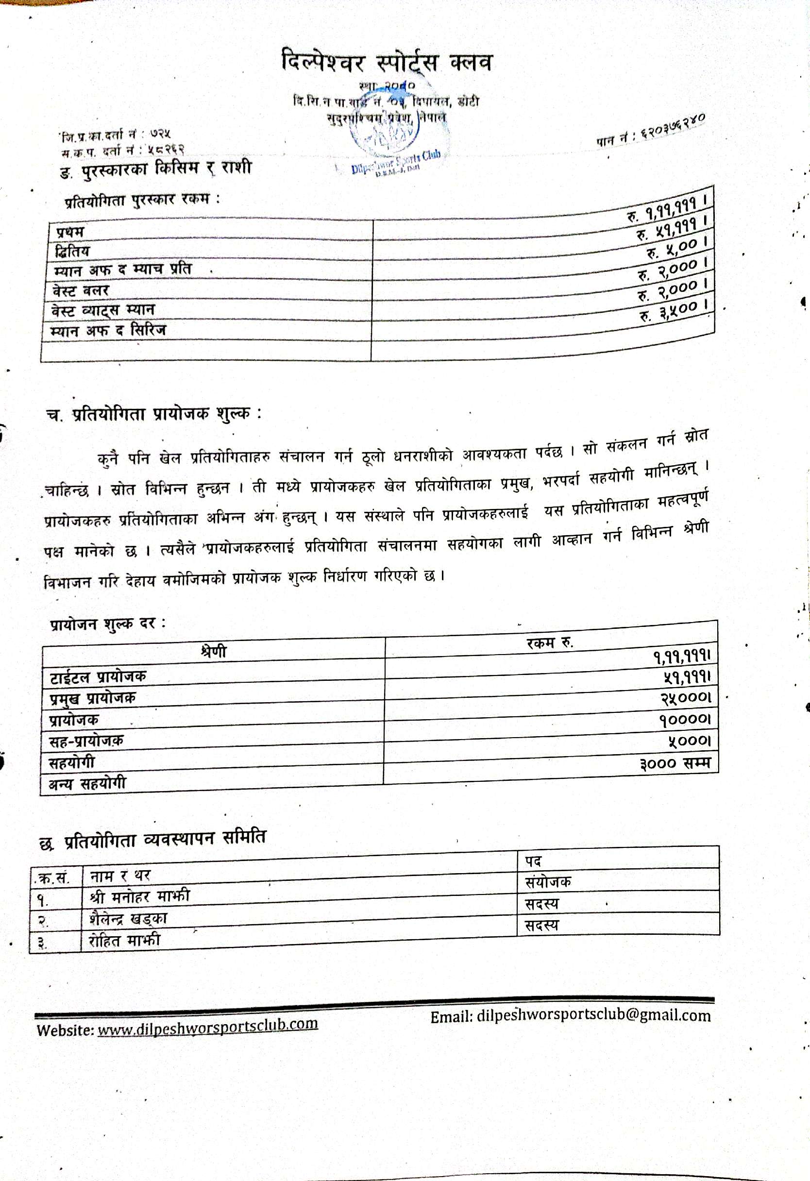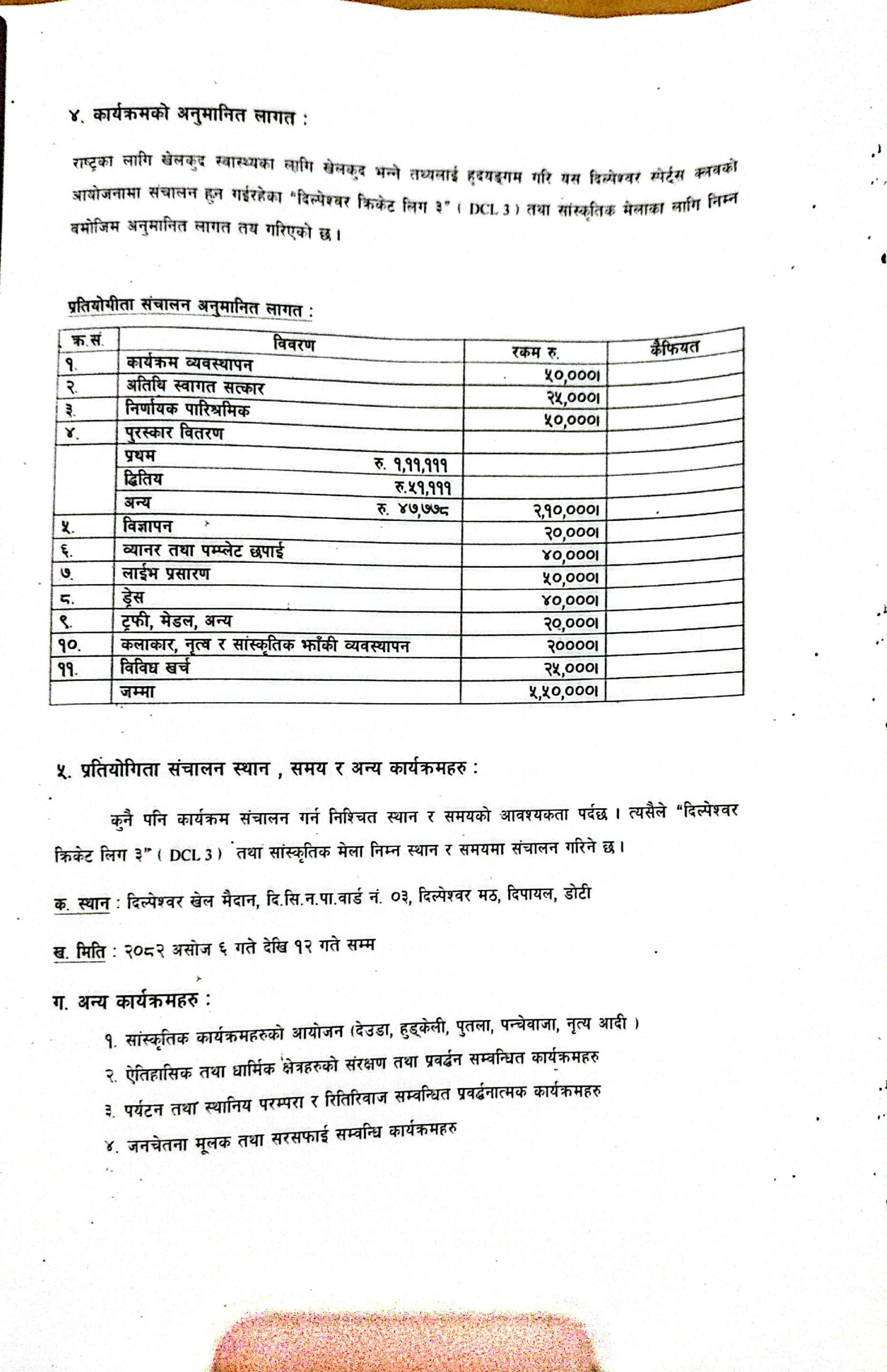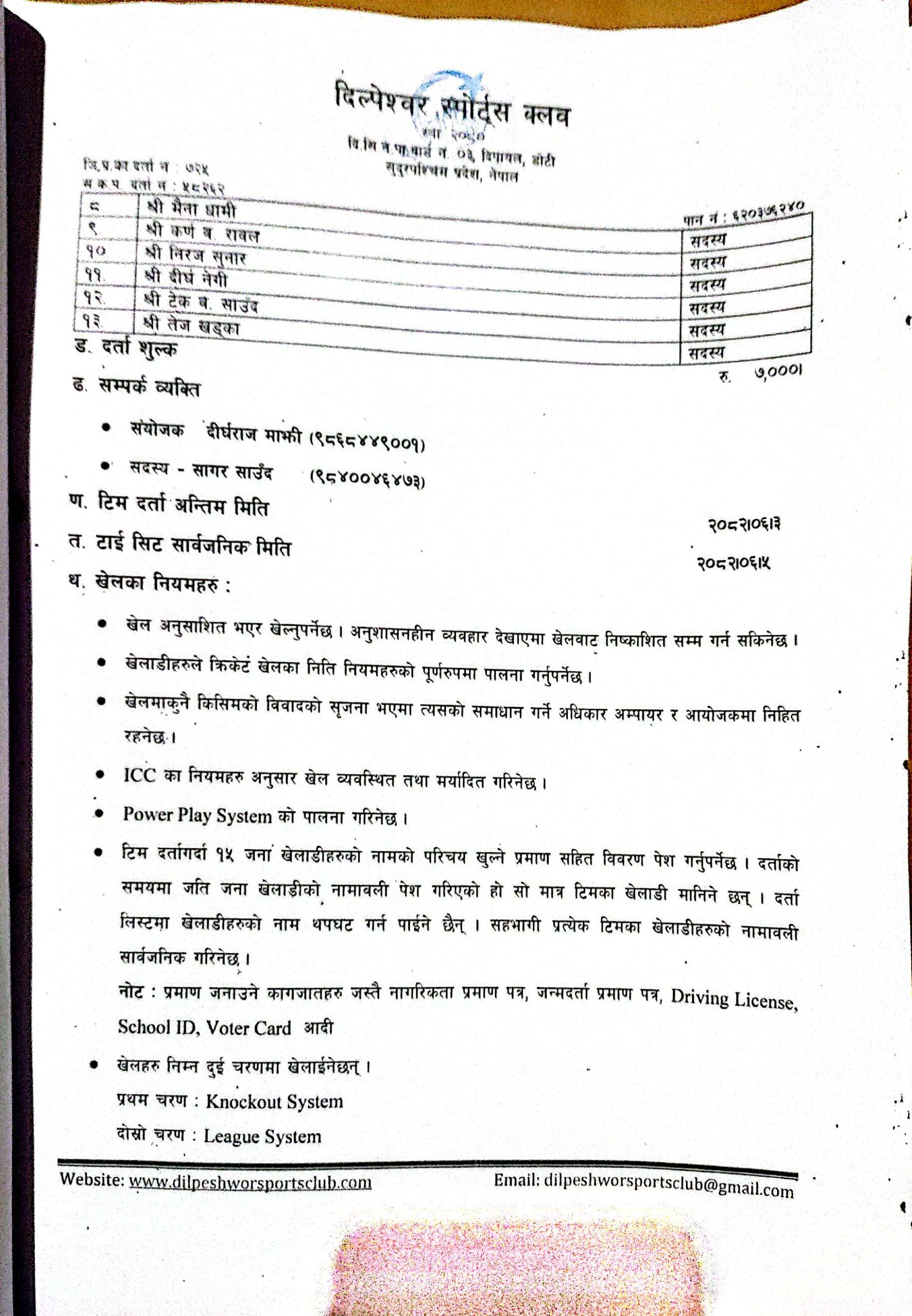 दिल्पेश्वर स्पोटर्स क्लबद्वारा तेस्रो संस्करणको पुरुष क्रिकेट प्रतियोगिता आयोजना, प्रथमलाई एक लाख ११ हजार नगद पुरस्कार