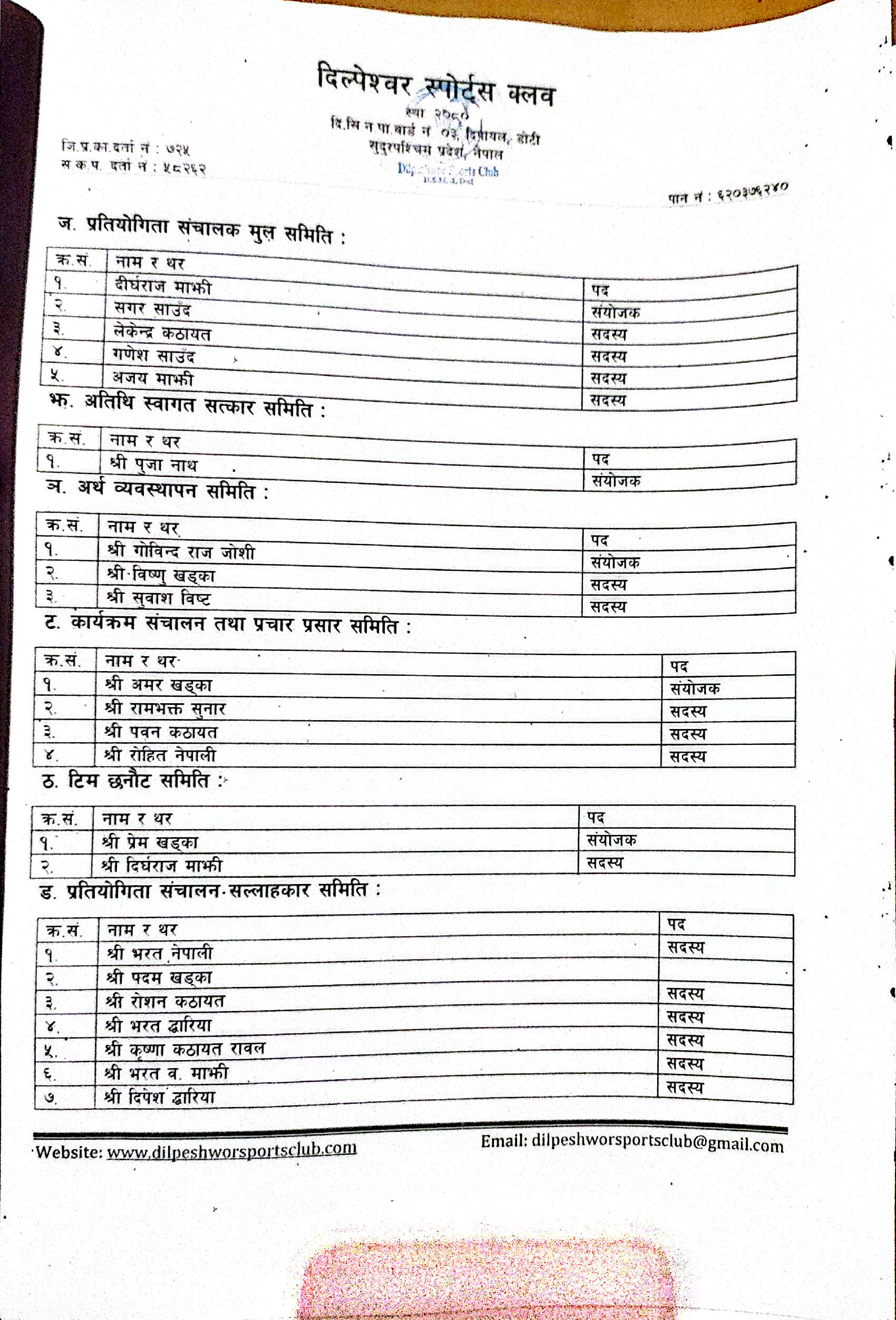 प्रतियोगिता संचालक मुल समिति संयोजकको जिम्मेवारी दीर्घराज माझीले सम्हाल्नेछन् । सगर साउँद, लोकेन्द कठायत, गणेश साउँद र अजय माझि समितिको सदस्यमा रहेका छन् । साथै, सल्लकार समितिमा मनोहर माझी, विष्णु बहादुर खड्का, लाकेन्द्र कठायत, सिताराम नाथ, अमर खड्का, कैलाश नाथ, शैलेन्द्र खड्का र अशोक द्वारीया सदस्यका रूपमा रहनेछन् ।