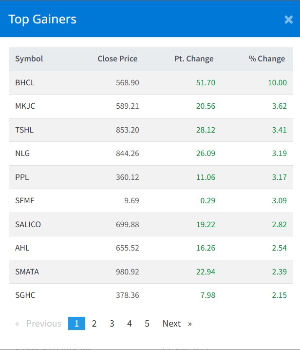 त्यस्तै, मैलुङ खोला जलविद्युतको ३.६२ प्रतिशत, थ्रीस्टार हाइड्रोपावरको ३.४१ प्रतिशत, एनएलजी इन्स्योरेन्सको ३.१९ प्रतिशतले शेयरमूल्य बढेको छ ।