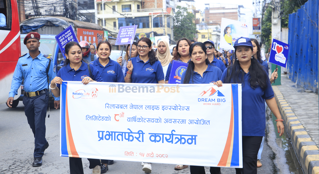 काठमाडौं । रिलायबल नेपाल लाइफ इन्स्योरेन्स कम्पनी लिमिटेडले आठौं वार्षिकोत्सव विविध कार्यक्रम आयोजना गरी मनाएको छ । कम्पनीले आज विहान काठमाडौंमा प्रभातफेरी आयोजना गरी वार्षिकोत्सव मनाएको हो ।