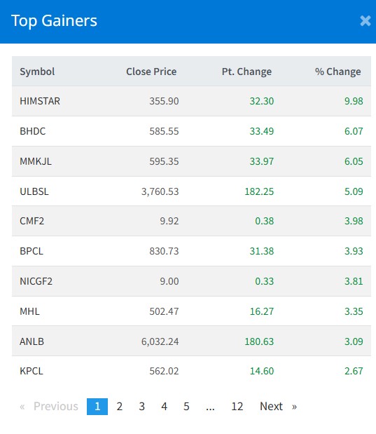 त्यस्तै, बिन्द्यावासीनी हाइड्रोपावर, उपकार लघुवित्त लगायतका कम्पनीहरुको शेयरमूल्य सर्वाधिक बृद्धि भएको छ ।