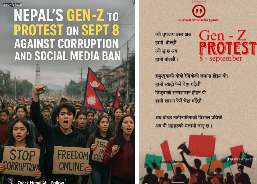 सामाजिक सञ्जालहरु फेसबुक, टिकटक आदिमार्फत गरिएको व्यापाक प्रचार प्रसारमा जेन जि पुस्ताहरु सहभागी भएर भोलि सरकारका विरुद्धमा बिशाल प्रदर्शन हुन लागेको हो । सामाजिक सञ्जालमा भ्रष्टाचार विरुद्ध, सुशासन स्थापना गर्न र भोलिको नयाँ नेपालको लागि सडकमा आउन बाध्य भएको भन्दै जेन जि पुस्ता (सन् १९९७ पछि जन्मिएका युवा पुस्ता)हरुले व्यापक रुपमा अभियान चलाइरहेका छन् ।