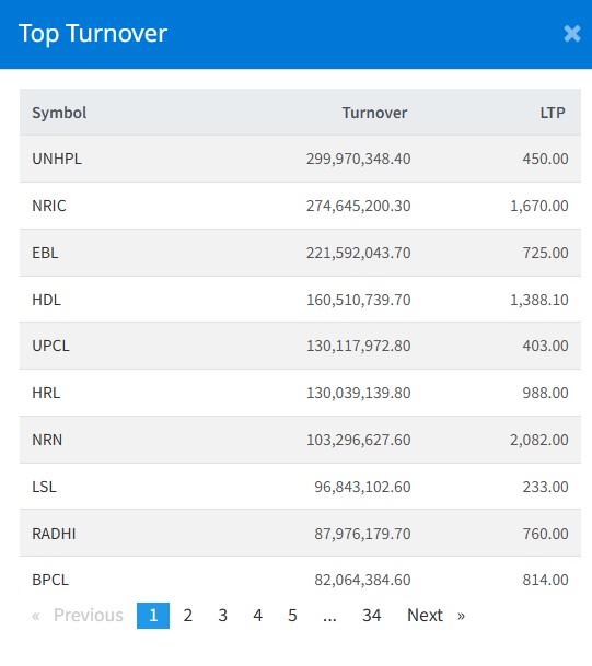 शेयर बजार बढेसँगै विभिन्न सेक्टरका ३३४ वटा कम्पनीहरुको चार अर्ब ४० करोड २७ लाख रुपैयाँको शेयर कारोबार भएको छ । जसमा युनियन हाइड्रोपावरको २९ करोड ९९ लाख रुपैयाँले सर्वाधिक कारोबार भएको छ ।