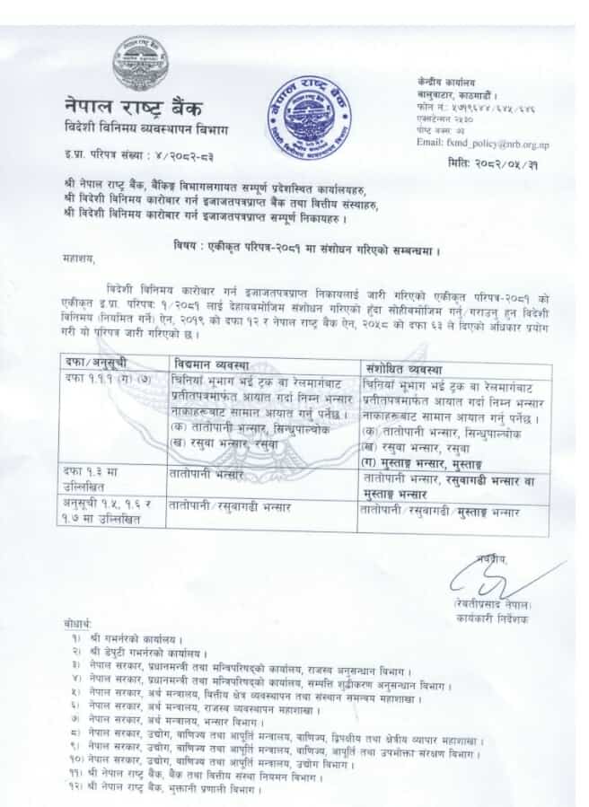 राष्ट्र बैंकको नयाँ परिपत्र: चिनियाँ आयातका लागि मुस्ताङ्ग भन्सार समेत खुल्यो, व्यापारमा सहजता