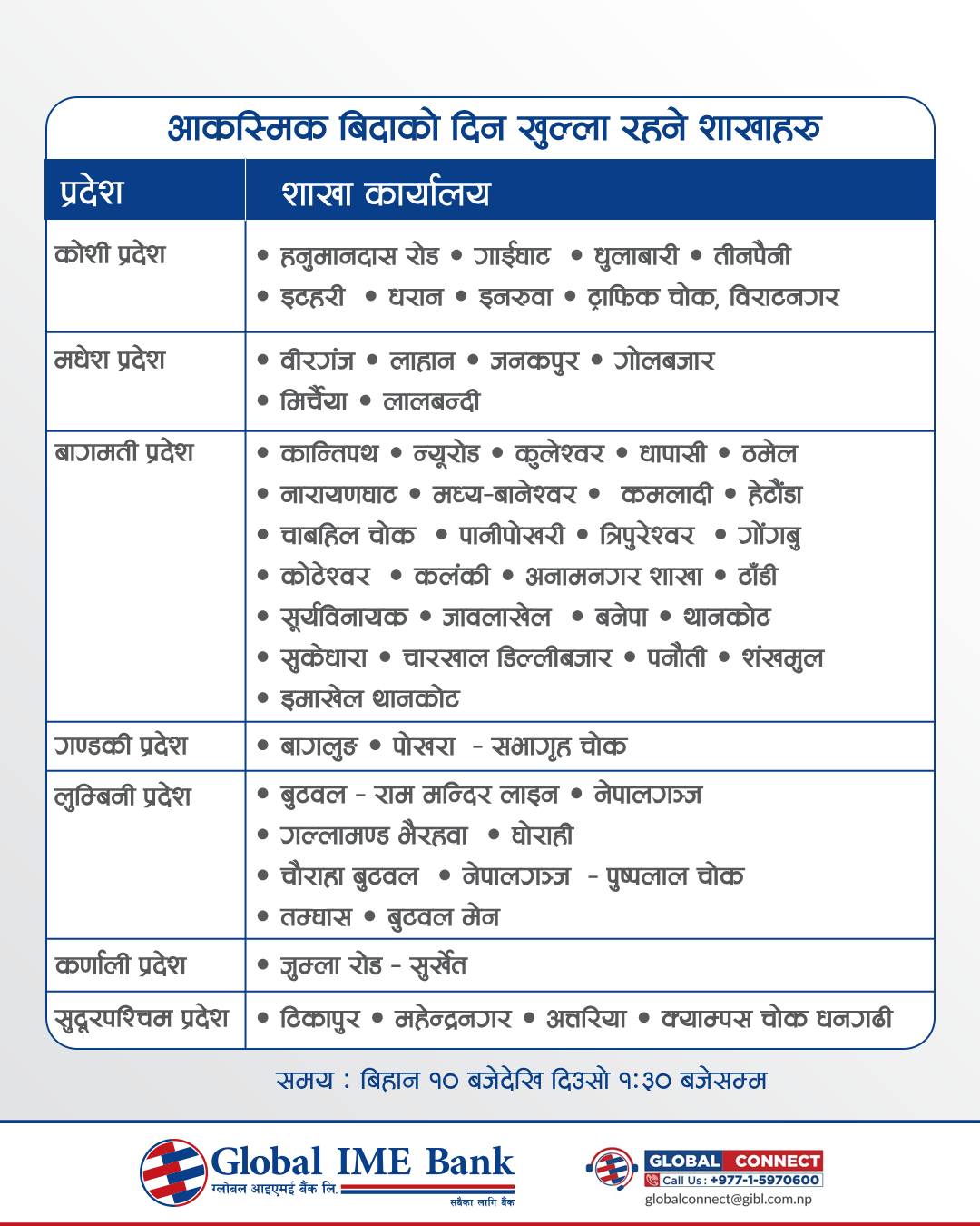 कुन बैंकका कुन शाखा खुला रहछन् ?