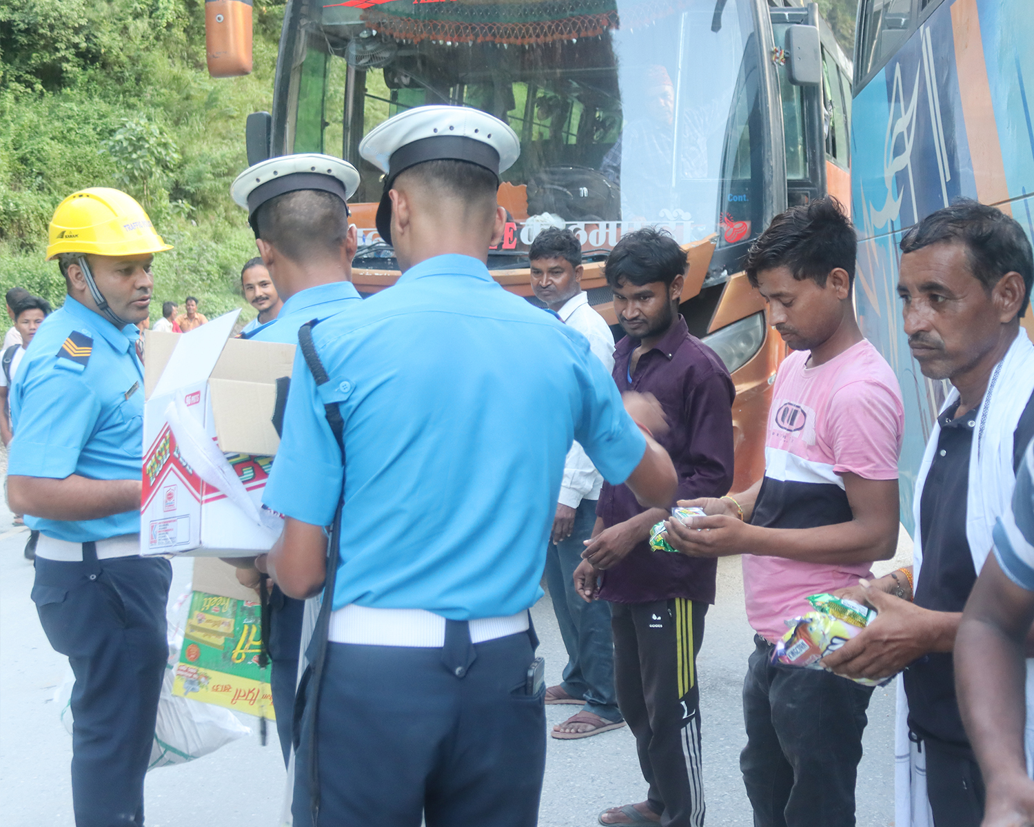 नारायणगढ–मुग्लिन सडकमा अलपत्र परेका यात्रुलाई निःशुल्क खाना–खाजा वितरण