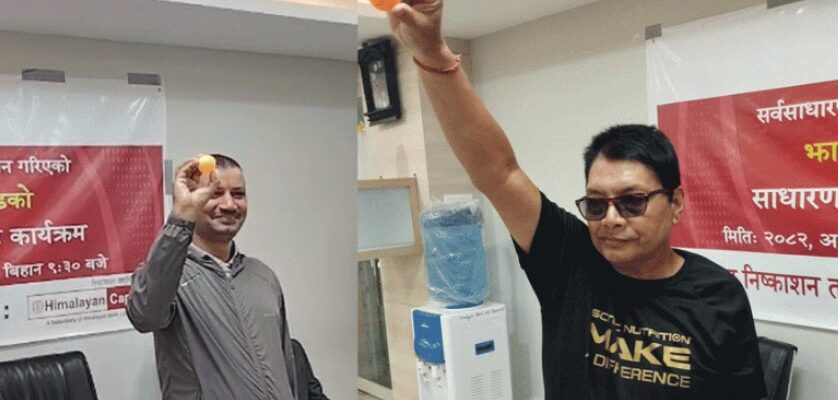 काठमाडौं । झापा इनर्जी लिमिटेडले सर्वसाधारणलाई निष्काशन गरेको आईपीओ बाँडफाँड गरेको छ। बिक्री प्रबन्धक हिमालयन क्यापिटल लिमिटेले आज बिहान शेयर बाँडफाँड गरेको हो। कम्पनीले भदौ २० देखि सर्वसाधारणलाई ४ लाख ७३ हजार ३ सय ३६ कित्ता शेयर निष्काशन गरेको थियो। जसमा १८ लाख ६८ हजार १४१ जनाले आवेदन दिएका थिए। जसमध्ये १८ लाख ३३ हजार ७ सय ३८ जनाको आवेदन स्वीकृत भएको छ। आईपीओ बाँडफाँडमा ४७ हजार ३३३ जनाले १०/१० कित्ताका दरले शेयर पाएका छन्। शेयर पाएका मध्येबाट ६ जनाले थप १/१ कित्ता गरी ११ कित्ता शेयर पाएका छन्। आईपीओको नतिजा अनलाइनमा प्रकाशित हुन केही समय लाग्नेछ। यसरी हेर्नुहोस् झापा इनर्जीको आईपीओको नतिजा