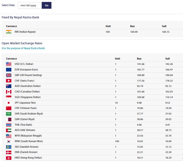 सोमबारको लागि विदेशी मुद्राको विनिमयदर निर्धारण, कुनको कति ?