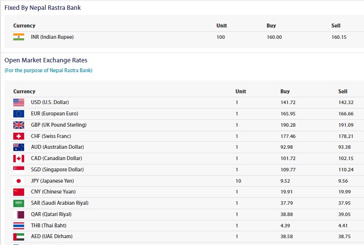 मंगलबारको लागि विदेशी मुद्राको विनिमयदर निर्धारण, कसको खरिद–बिक्री मूल्य कति ?