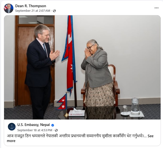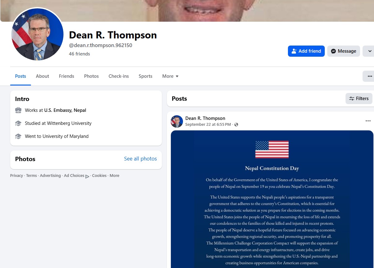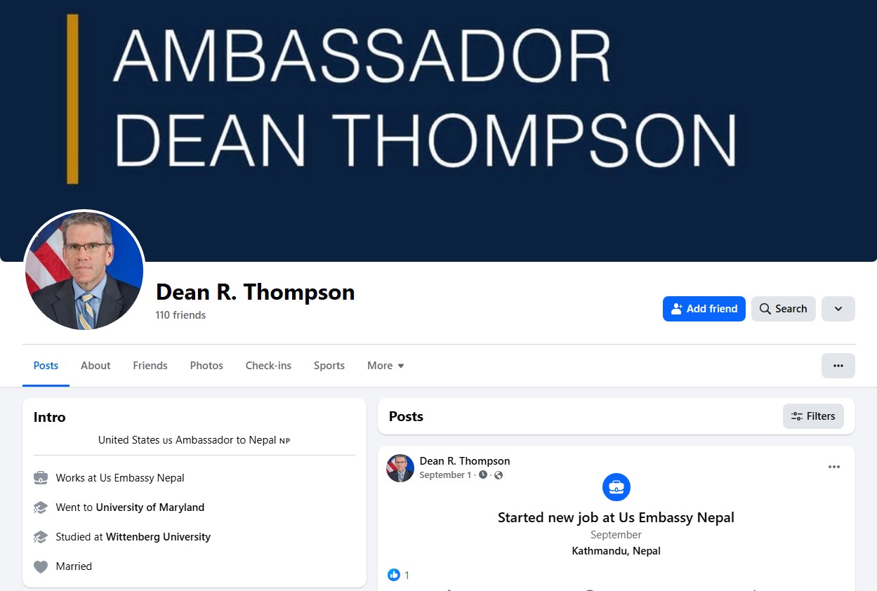 अमेरिकी राजदूत डिन थम्सनको नक्कली फेसबुक आईडी छ्यापछ्याप्ती