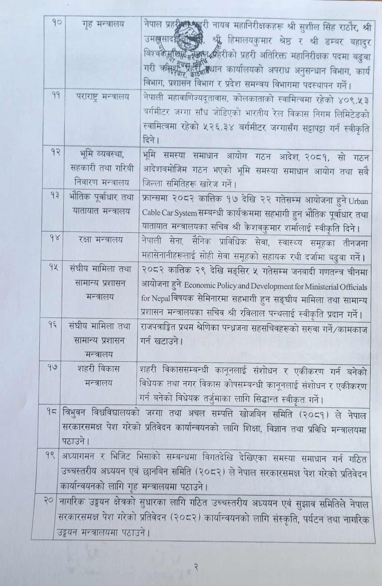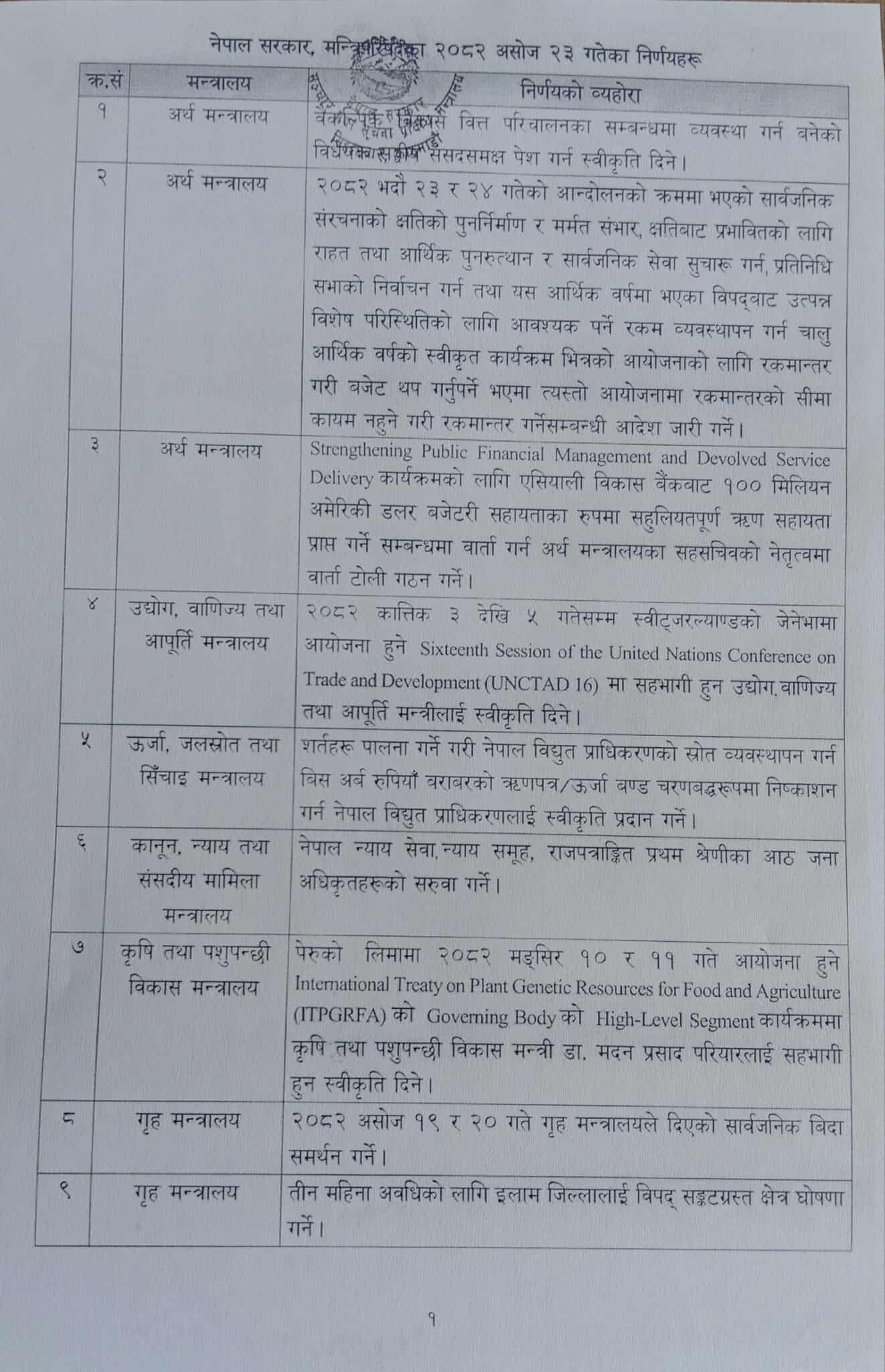 यस्ता छन् मन्त्रिपरिषद् बैठकका २० निर्णय