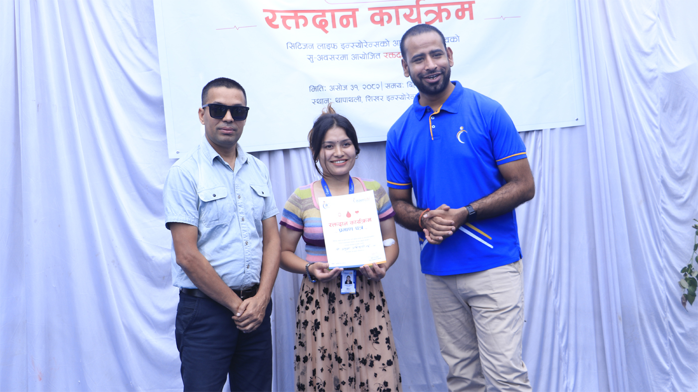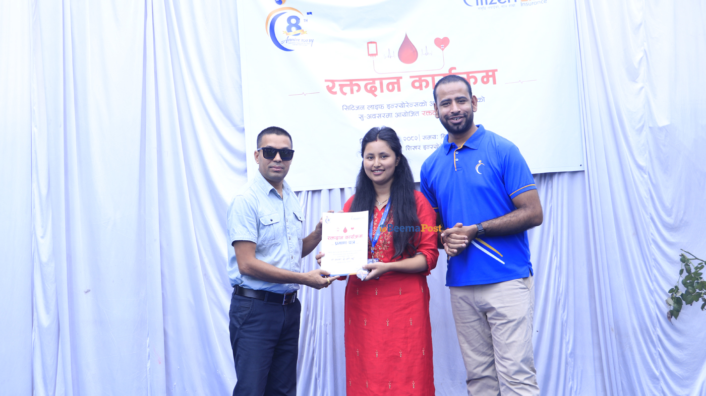 सिटिजन लाइफ इन्स्योरेन्सको बृहत रक्तदान कार्यक्रम, कर्मचारी, अभिकर्ता र बीमितको बाक्लो सहभागिता (तस्विरुहरु)