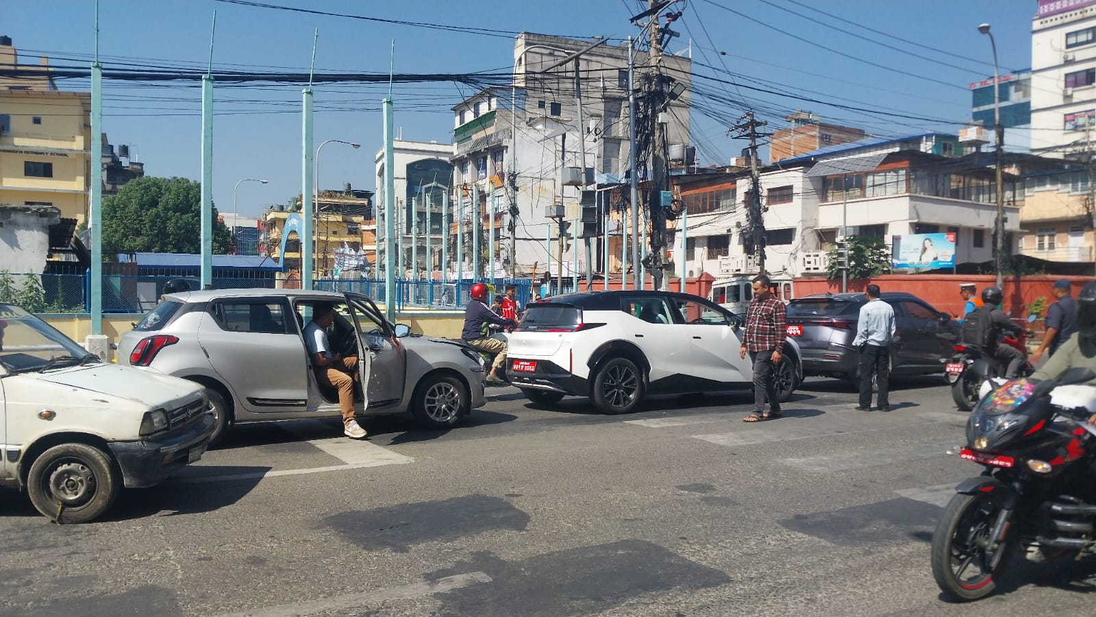 पुतलीसडकमा तीन वटा कार एक–आपसमा ठोक्किए