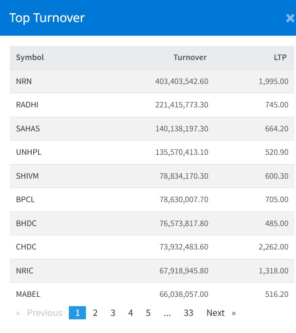 त्यस्तै, राधि जलविद्युत कम्पनीको २२ करोड १४ लाख रुपैयाँ, शाहस उर्जाको १४ करोड एक लाख रुपैयाँ, युनियन हाइड्रोपावरको १३ करोड ५५ लाख रुपैयाँले सर्वाधिक कारोबार भएको छ ।