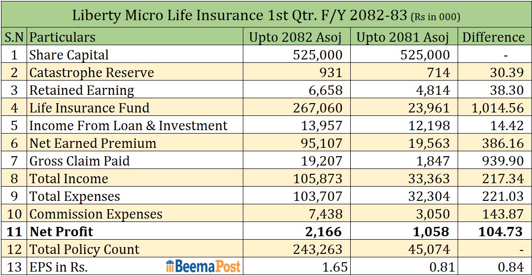लिवर्टी माइक्रो लाइफको नाफा १०४ प्रतिशत बढ्यो, अन्य सूचकको अवस्था कस्तो?