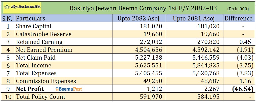 तीन महिनामा राष्ट्रिय जीवन बीमाले कमायो १२ लाख रुपैयाँ, कस्तो छन् अन्य वित्तीय सूचकहरु?