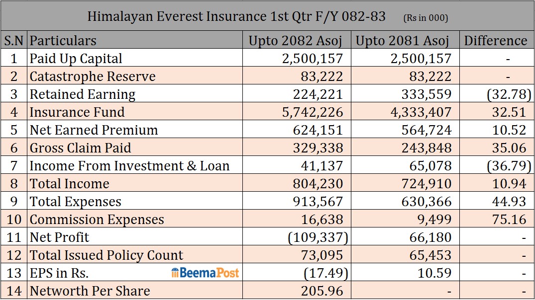 हिमालयन एभरेष्ट इन्स्योरेन्सको व्यवसाय बढ्यो, अन्य वित्तीय सूचक कस्तो?