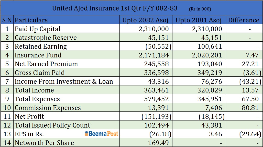 यूनाइटेड अजोड इन्स्योरेन्सको आम्दानी र व्यवसायमा वृद्धि, बीमाकोष २ अर्ब १७ करोडमाथि