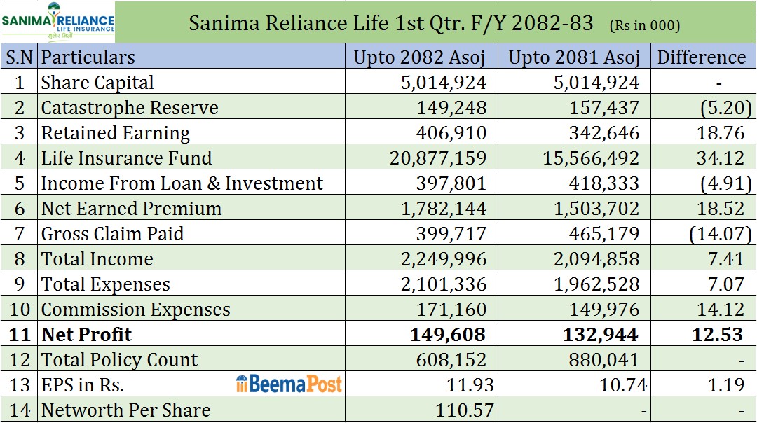 सानिमा रिलायन्स लाइफको वित्तीय सूचकमा प्रगतिः नाफासँगै आम्दानी बढ्यो, बीमाकोष २१ अर्ब नजिक