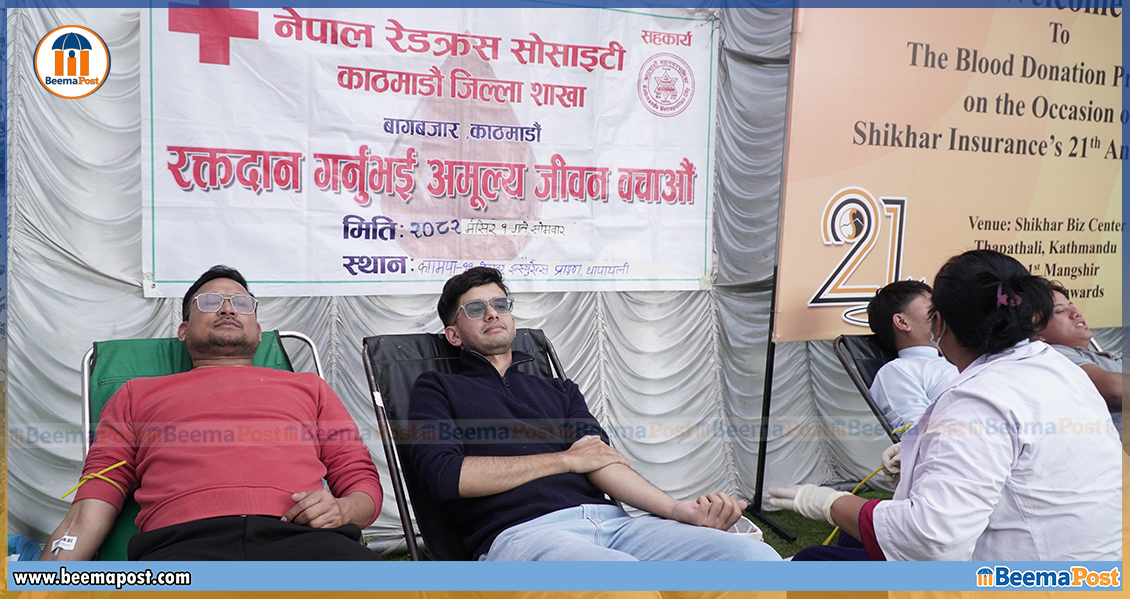काठमाडौँ। शिखर इन्स्योरेन्स कम्पनीले आफ्नो २१औं वार्षिकोत्सवको अवसरमा सामाजिक उत्तरदायित्व पालन गर्दै रक्तदान कार्यक्रम आयोजना गरेको छ।