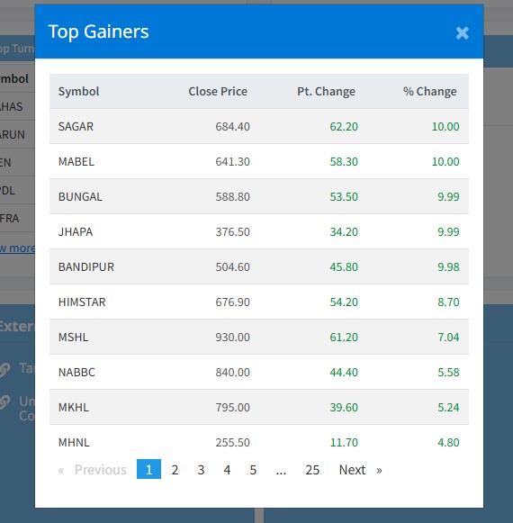 नेपाल स्टक एक्सचेञ्ज (नेप्से) १३.८० अकंले बढेर २५६४.१६ बिन्दुमा कायम भएको छ । आज ३४५ कम्पनीको ९१ लाख ९५ हजार कित्ता शेयर किनबेच हुँदा ४ अर्ब ६ करोठ ५६ लाख १२ हजार रुपैयाँको शेयर कारोबार भएको हो ।