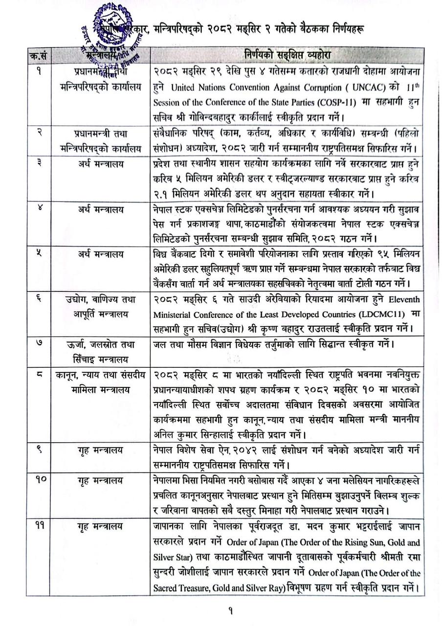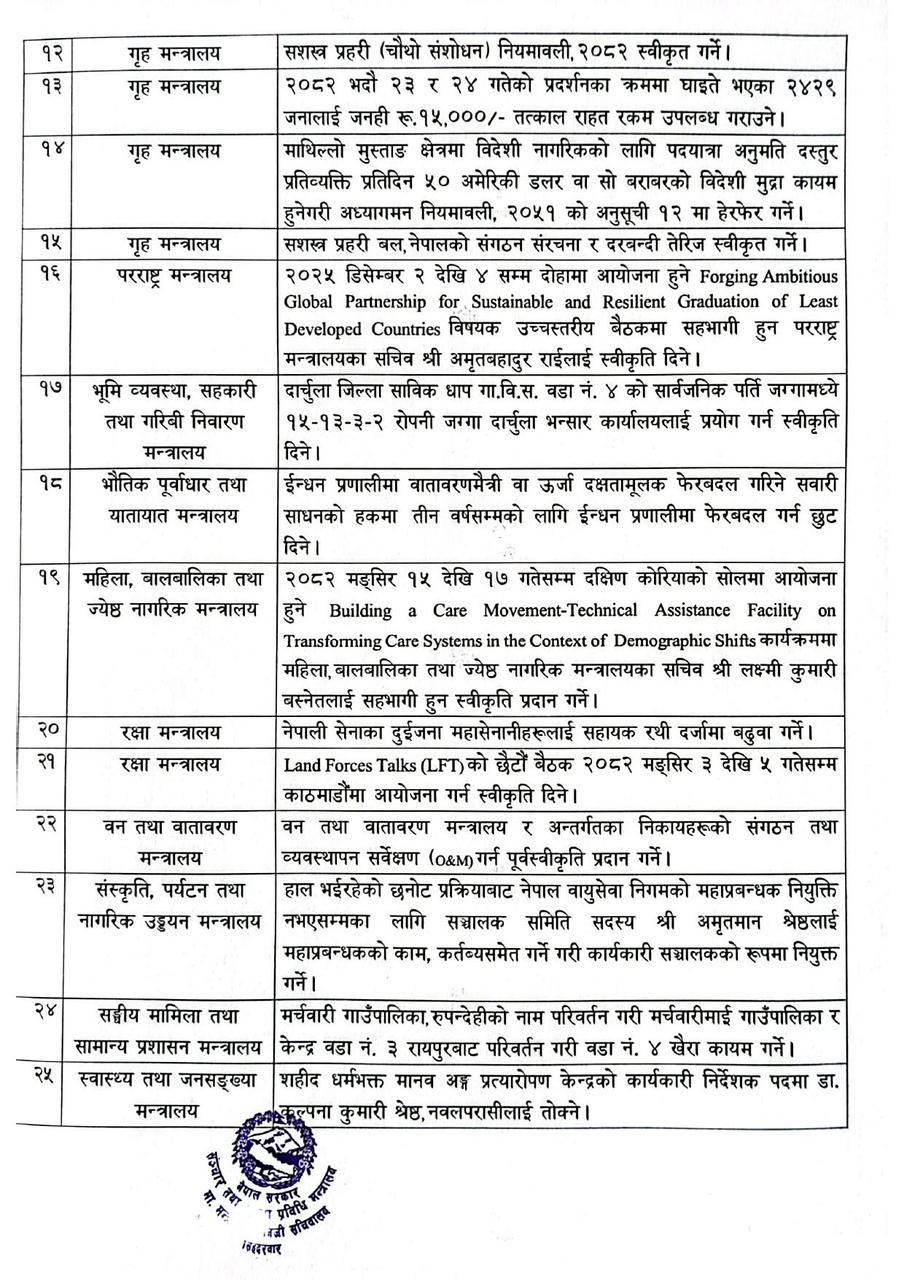 यस्ता छन् मन्त्रिपरिषद् बैठकका २५ निर्णय
