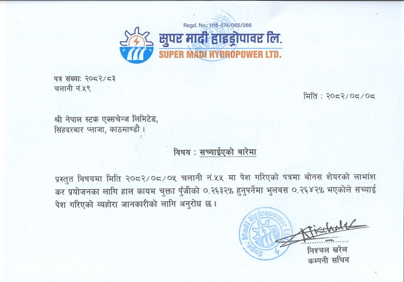 सुपर मादी हाइड्रोपावरले सच्यायो लाभांश