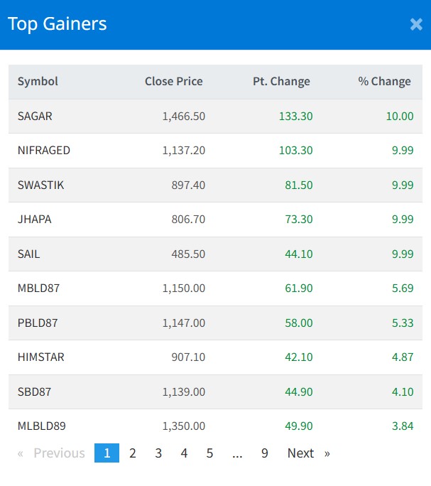शेयर बजारमा आज विभिन्न सेक्टरका ४५ वटा कम्पनीहरुको शेयरमूल्य बृद्धि भएको छ ।