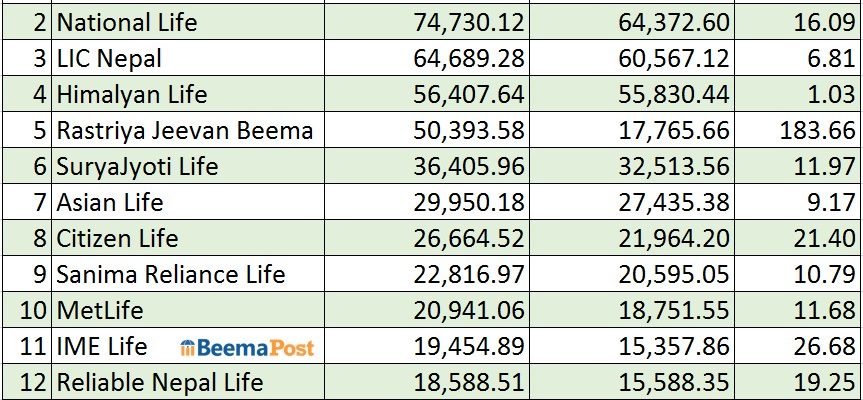 जीवन बीमकको कुल बीमाशुल्क आर्जन १६ प्रतिशतले बढ्यो, कुन कम्पनीको कति?
