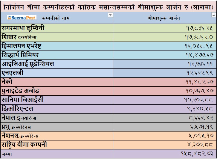 निर्जिवन बीमा कम्पनीहरुले साढे १५ अर्ब माथिको व्यवसाय भित्र्यायो, सगरमाथा, शिखर र हिमालयन एभरेष्ट अग्रस्थानमा