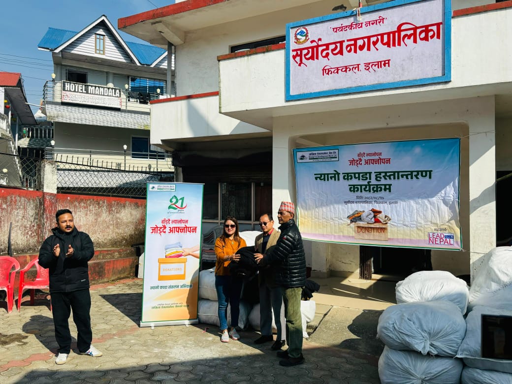 काठमाडौँ । सांग्रिला डेभलपमेन्ट बैंकले इलामका बाढीपहिरो प्रभावितका लागि न्यानो कपडा हस्तान्तरण गरेको छ । मंसिर १५ गते आयोजित बेग्ला बेग्लै कार्यक्रममा इलामको सूर्योदय नगरपालिकाका मेयर रणबहादुर राई र इलाम नगरपालिकाका मेयर केदार थापालाई न्यानो कपडा हस्तान्तरण गरिएको हो ।
