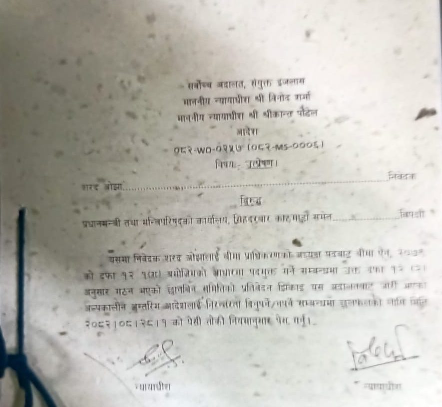 ओझाको मुद्दामा छानविन समितिको प्रतिवेदन झिकाउन सर्वोच्च अदालतको आदेश, २८ गते नयाँ पेशी