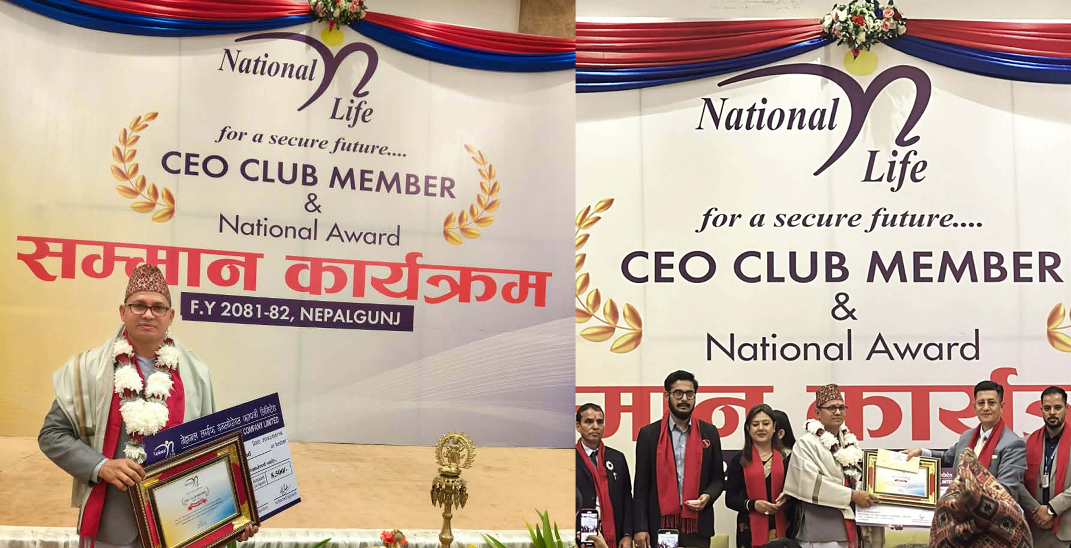 कार्यक्रममा सीईओ क्लब मेम्बर , नेशनल रत्न लगायत प्रदेशमा संजालबाट र ब्यक्तिगत कोडबाट उत्कृष्ट बीमा व्यवशाय गर्ने प्रथम, द्वितीय र तृतीयलाई प्रमुख कार्यकारी अधिकृतबाट नगद दोसल्ला र प्रमाणपत्र दिई सम्मान गरिएको छ। नेशनल लाइफ महेन्द्रनगर शाखाका चिफ बिजनेस म्यानेजर राजेन्द्र बहादुर चन्द लगातार यसपटक पनि संजाल व्यवसायबाट सुदुरपश्चिम प्रदेश प्रथम हुदै कम्पनीका प्रमुख कार्यकारी अधिकृत खत्रीबाट सम्मानित भएका छन् ।