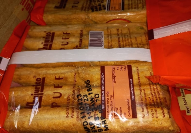 खाद्य विभागले ललितपुर, गोदावरी–१० स्थित उद्योगले उत्पादन गरेको ब्याच नम्बर बी १ थ्री ए र बी १ फाइभ ए का पफ तुरुन्त फिर्ता लैजान र थप बिक्री नगर्न भनेको छ। विभागले यसलाई ‘न्यूनस्तरको खाद्य पदार्थ’ ठहर गर्दै बजारमा उपभोक्ताको स्वास्थ्य सुरक्षा प्राथमिकता रहेको स्पष्ट पारेको छ।