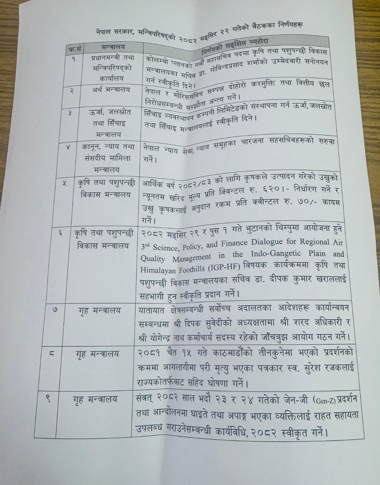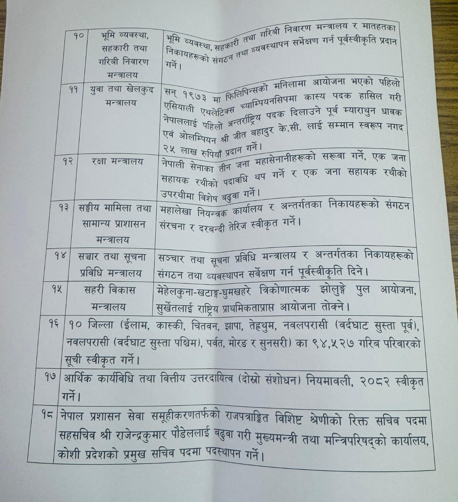 यस्ता छन् मन्त्रिपरिषद् बैठकका १८ निर्णय