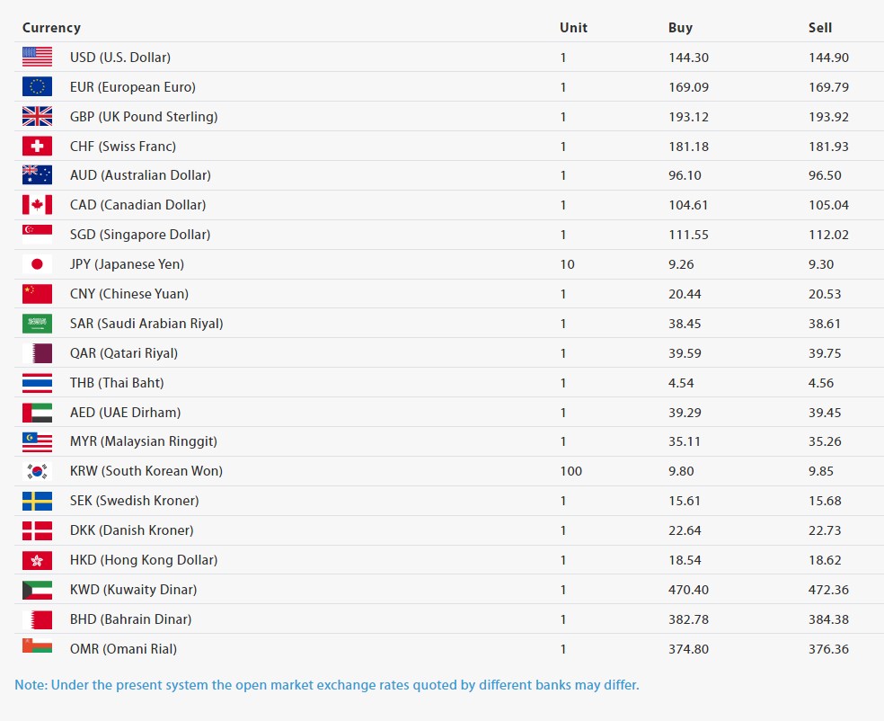काठमाडौं । नेपाल राष्ट्र बैंकका अनुसार आज अमेरिकी डलरको भाउ हालसम्मकै उच्च विन्दुमा पुग्दै एक डलरको खरीददर १४४.३० रुपैयाँ र बिक्रीदर १४४.९० रुपैयाँ कायम भएको छ।